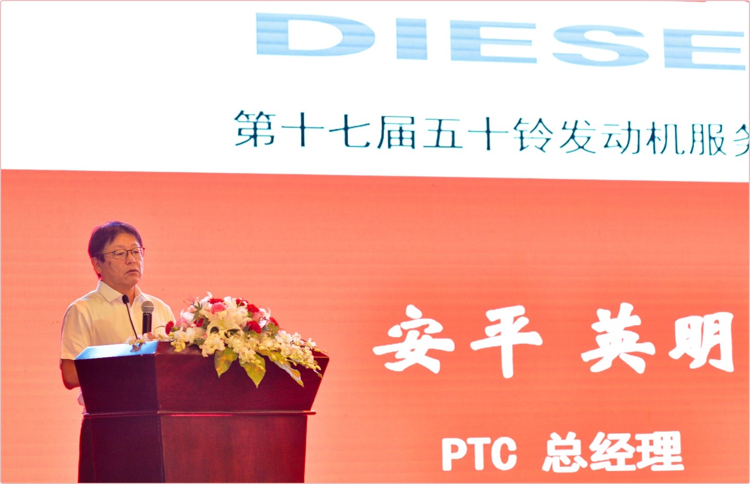 會議上,PTC總經理 安平英明致辭。安平總經理首先對中國政府在疫情方面做出的努力和付出表示感謝。疫情期間,PTC的事業保持著發展的步伐,并取得了良好的發展結果,這離不開當下國內穩定的社會環境,和國家各項發展政策的支持。同時,安平總經理指出,服務站各位是支撐PTC發展的幕后英雄,對他們的默默付出表示感謝。安平總經理介紹了目前的挖機市場動向,搭載五十鈴發動機的挖機市場保有量等重要市場信息,除此之外,還提到了為應對明年將要正式實施的國四排放法規而采取的后處理器對策,并表示這一新的變化在準備充分的前提下對各方來說都將是發展的一大機遇。在全球經濟受新冠疫情影響而發展緩慢的情況下,中國經濟在以習近平為核心的黨中央的堅強領導下將會繼續呈發展進步態勢,因此,對于未來事業的發展,服務站各位及PTC都有充分的信心。