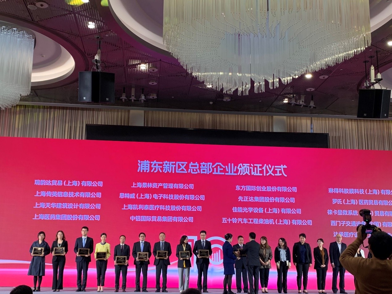 2022年11月28日,由浦東新區商務委員會主辦的第八屆浦東總部經濟十大經典樣本發布活動在上海中心大廈舉行。