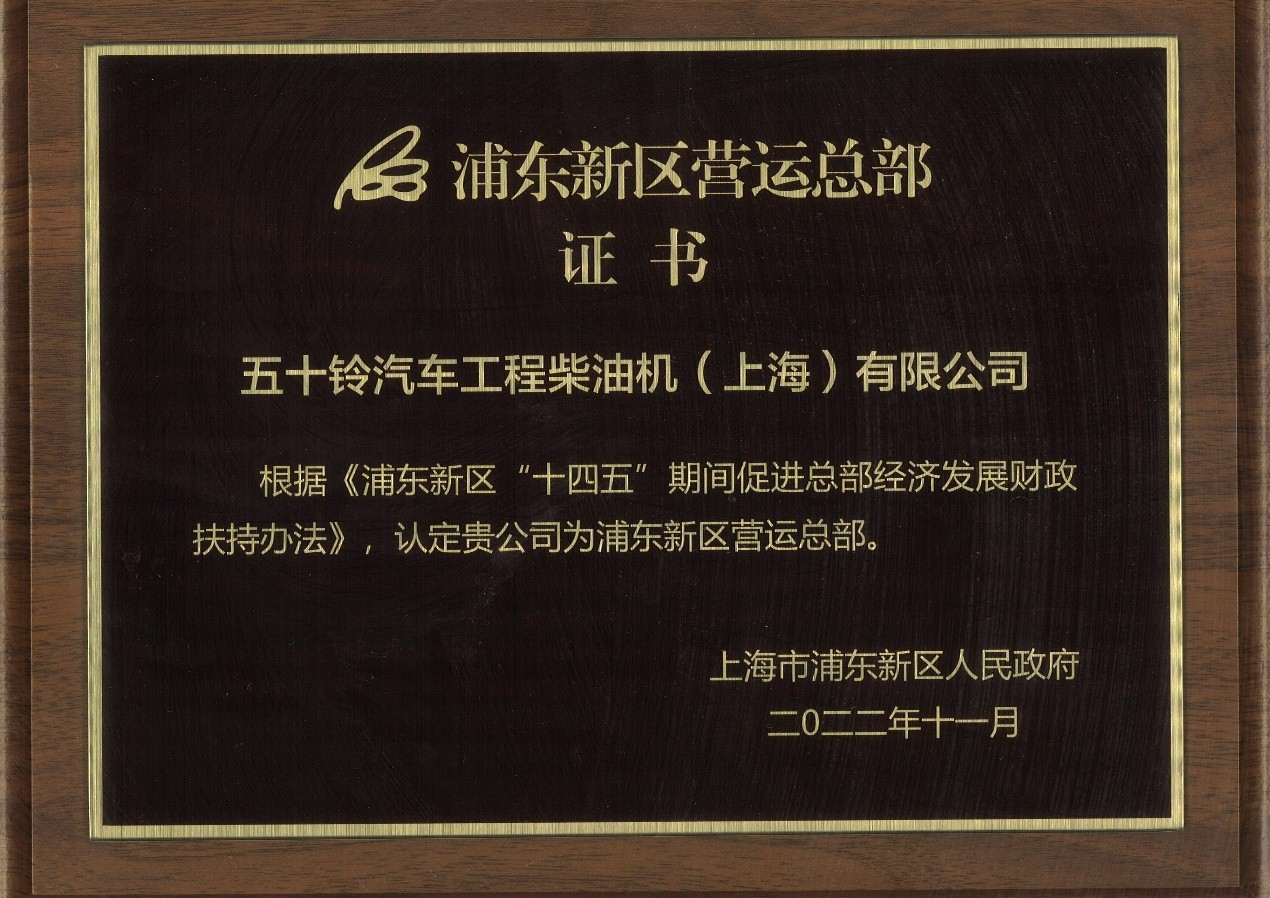 經過層層考核和篩選,五十鈴汽車工程柴油機(上海)有限公司有幸在本次大會中被認定為浦東新區營運總部。這無疑是浦東新區政府對五十鈴的高度信任和認可的體現。我司總經理安平英明當日參加頒獎儀式,代表我司取得了認定證書。